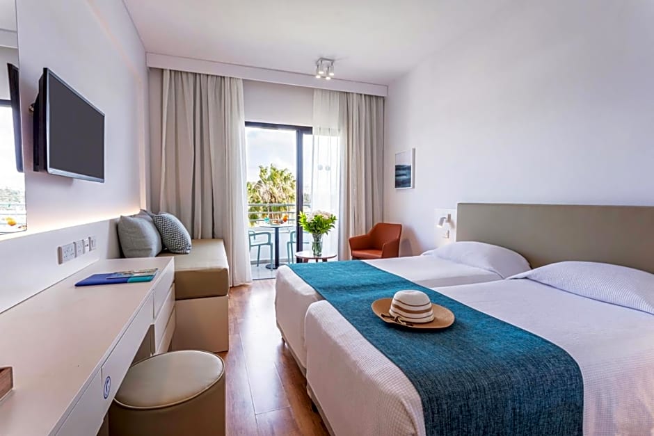 Welcome to the Louis Phaethon Beach Resort, a delightful 4-star oasis situated on Theas Aphrodites Avenue in Paphos, Cyprus. Just a short 2.8mi away from the vibrant city center, this beachfront hotel offers a stunning view of the ocean and a range of exceptional amenities.