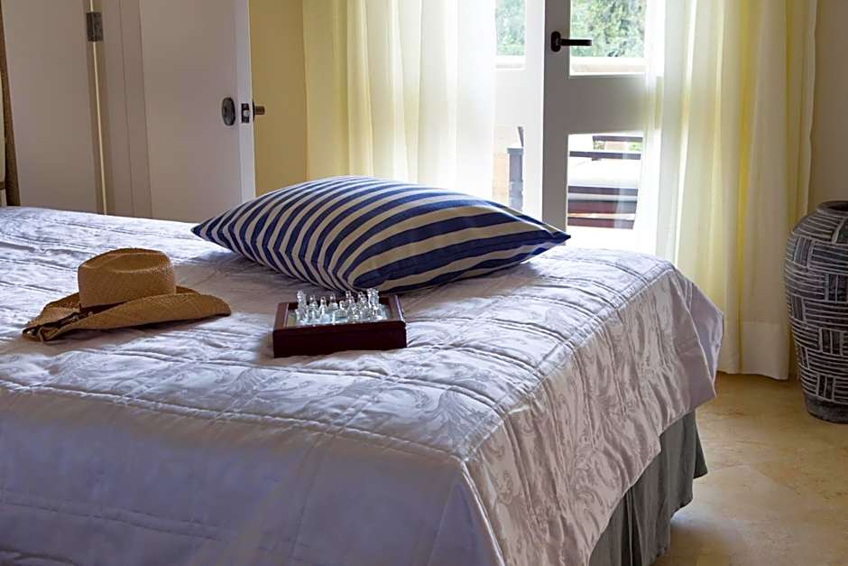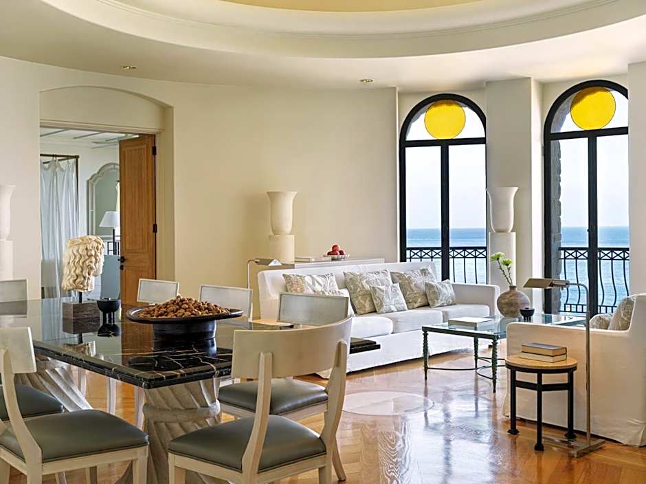 These suites can be found in both the main building and in individual residences within the gardens. With a very comfortable lounge area and a view to the sea, they feel spacious and airy, aided by cool marble floors, stylish Mediterranean furnishings and louvered doors.