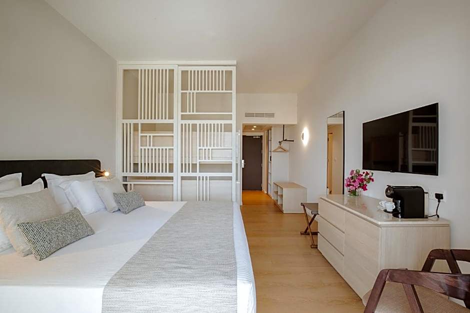 Set on the 1st floor, this room opens to a spacious balcony with direct Mediterranean Sea views and an exclusive open-air hot tub. Please note that this room type is fitted with either a double or 2 single beds and can accommodate up to 3 guests.