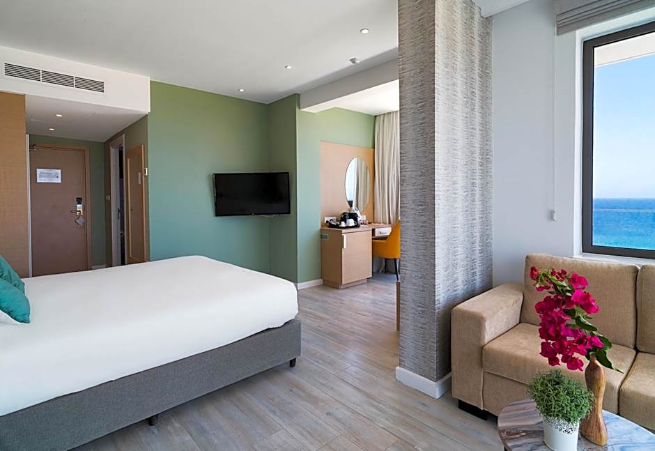 Opening to a balcony with side sea view, this air-conditioned room has a 43" flat-screen TV with international channels and radio. It also includes a mini fridge, tea/coffee making facilities and bathroom with walk-in shower. Bathrobe, slippers and free toiletries are provided.