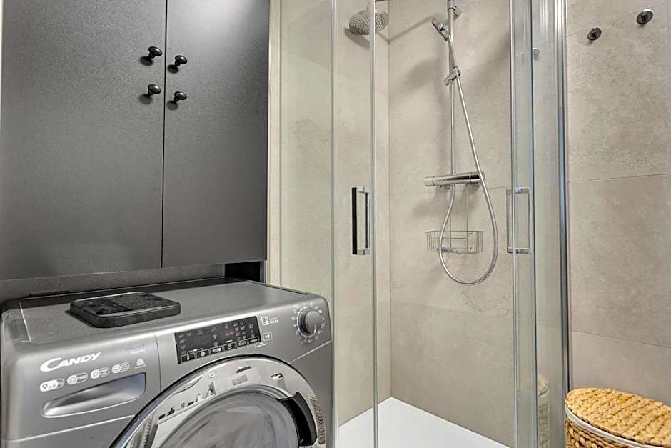 This apartment consists of 1 living room, 1 separate bedroom and 1 bathroom with a walk-in shower and a hairdryer. Meals can be prepared in the well-fitted kitchen, which is equipped with a stovetop, a refrigerator, a dishwasher and kitchenware. The apartment provides a washing machine, soundproof walls, a coffee machine, a flat-screen TV with streaming services, as well as city views. The unit offers 4 beds.