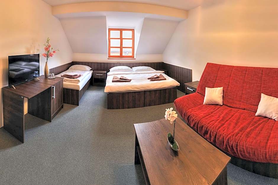 At Štiřínská stodola, fun and relaxation go hand in hand. Bring the whole family along—your furry friends are welcome too! With a complimentary kids' club and a sparkling playground, the little ones will have a blast while you unwind on the sun deck or sneak in a rejuvenating sauna session. Enjoy leisurely afternoons in the stunning garden or create unforgettable memories with a picnic. Plus, if you're in the mood for some classic fun, challenge yourself to a round of golf for an extra charge. And if you prefer to stay connected, take advantage of the free WiFi throughout the hotel.