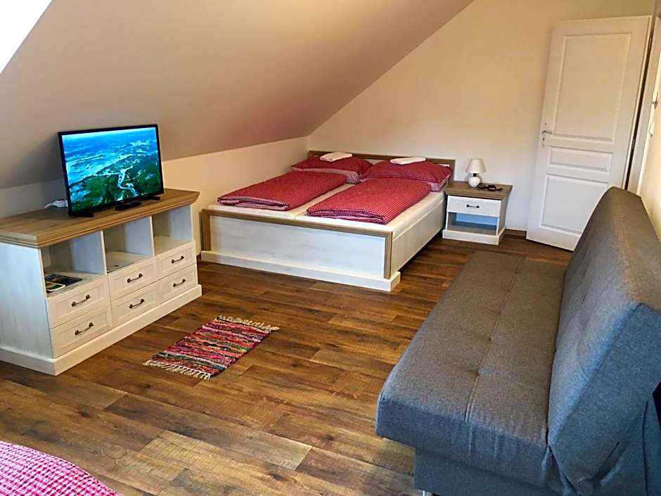 And when the day winds down, retreat to your cozy accommodation and unwind in comfort. Each unit is equipped with a handy kitchenette, allowing you to prepare your favorite meals should you choose to dine in. The private entrances and balconies provide a welcoming atmosphere with stunning views, making it easy to relax and soak in the peaceful environment. At Matějovec 109 & Ubytování Na statku, a warm Czech welcome awaits every guest, promising an authentic, enjoyable, and memorable adventure in the heart of the countryside.