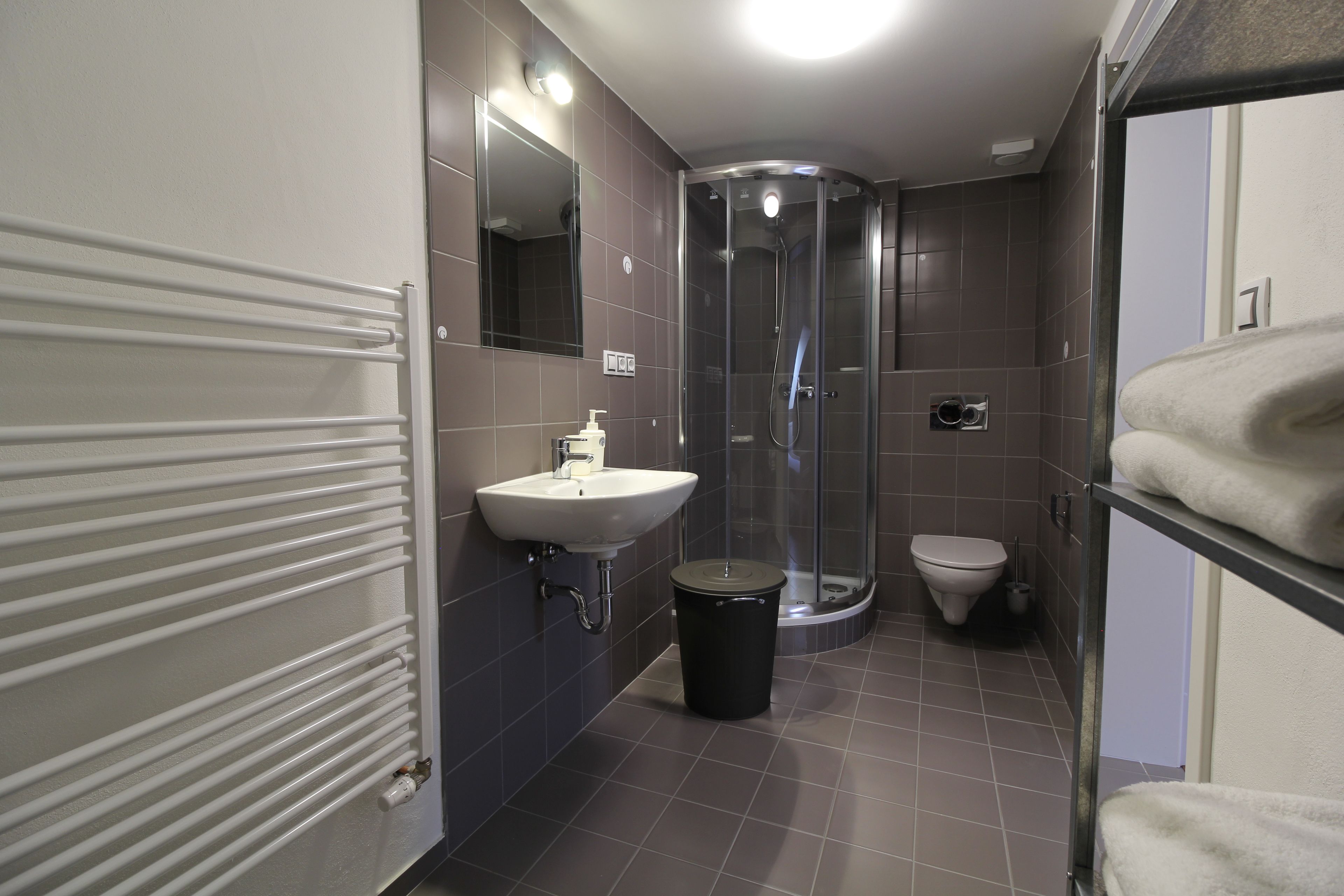 Perfect for a sightseeing traveler with a car. The rooms have individual toilets and showers and a small communal kitchen, fully stocked with tea and coffee. Also a laundry room if you need something washed. Location is good, but the way back can get sweaty, since it's a 20min walk uphill. Nothing too traumatic though. Check-in was fast, check-out even faster.