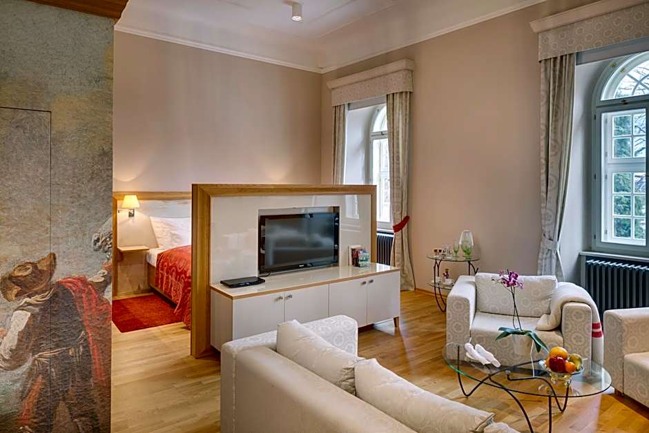 Very spacious suite with a bathroom, a bedroom and a living room with a sofa, a flat-screen TV and a mini-bar.