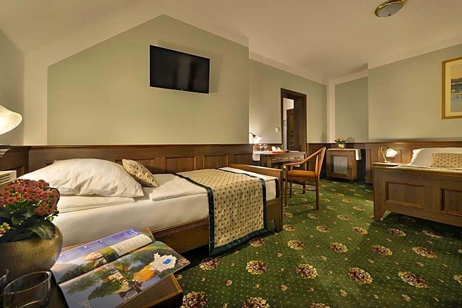 Hotel Podhrad offers a variety of rooms including Suites, Triple, Double, Single, and Family rooms. Occupancy ranges from accommodating 1 adult in the Superior Single Room to 4 adults and 2 children in the Suite and Suite - Annex rooms. Smoking is not allowed in any of the rooms. Bed options vary from Queen size to Twin beds, and the room sizes range from 215 sqft to 431 sqft.
