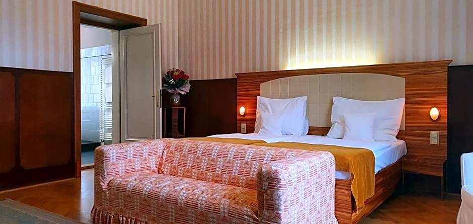 We appreciated the art nouveau style which was present in every part of the hotel from the lobby and the dining area to the hallway and the rooms. The rooms were large and airy with a comfortable bed and sitting area, as well as a delicate bathroom. The service was very accommodating and we were upgraded free of charge. The location vis-a-vis the old town is perfect, just around the corner.