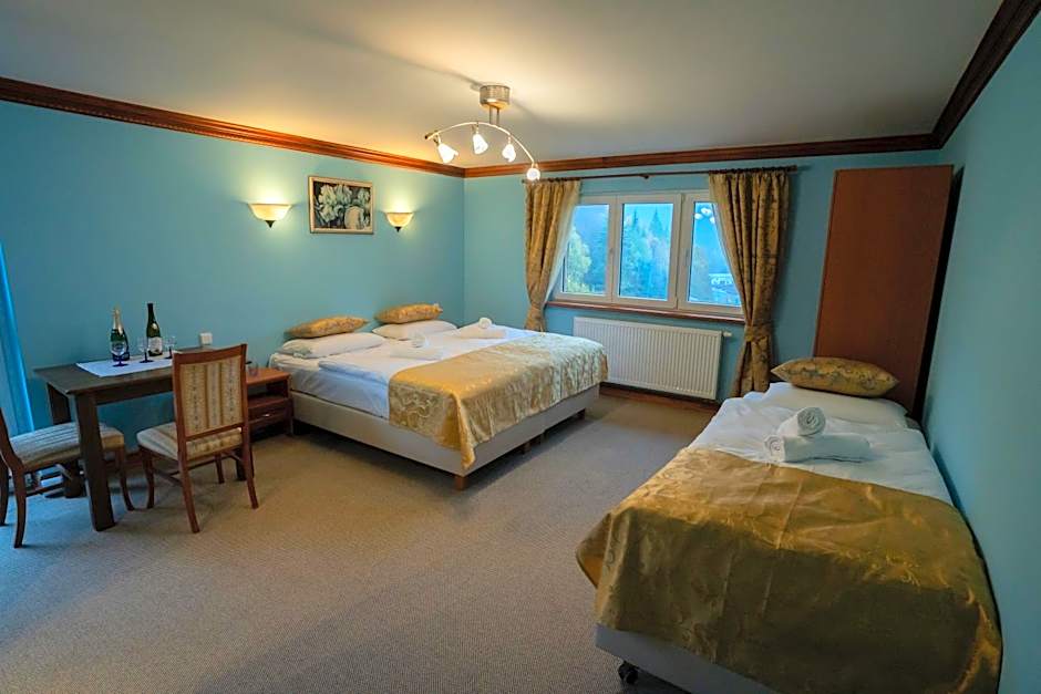 At Jáchymoff, every room is designed for comfort and relaxation, ensuring that you have the perfect space to unwind after your adventurous days! Whether you choose the spacious Triple Room with Bath, the elegant Deluxe Double Room with Shower, or opt for the cozy Economy Double Room, each accommodation comes with plush bedding and inviting decor. The garden views from select rooms are simply dreamy, showcasing the natural beauty surrounding the hotel and inviting you to wake up to a scenic slice of paradise.