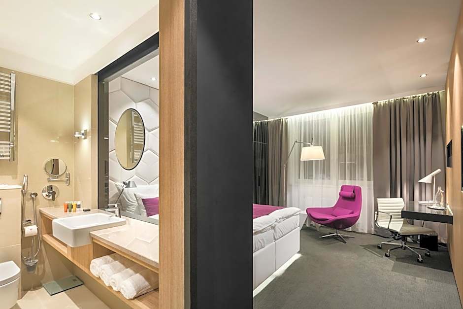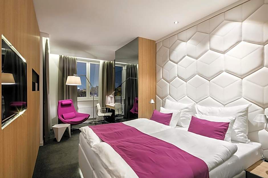 This twin/double room was designed by Radek Leskovjan. The room features a balcony, soundproofing and satellite TV.