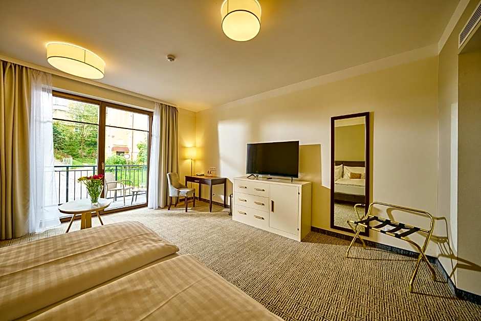 Unwind in one of the luxurious room options at the Wellness Hotel Queens, each designed to provide comfort and relaxation during your stay. From the spacious Superior rooms to the inviting Suites with terraces, there is a perfect accommodation to suit your preferences. Enjoy the modern amenities, cozy furnishings, and picturesque views from the balcony or terrace. Choose the ideal room type for your needs and make the most of your getaway in Mariánské Lázně at this top-rated wellness hotel.