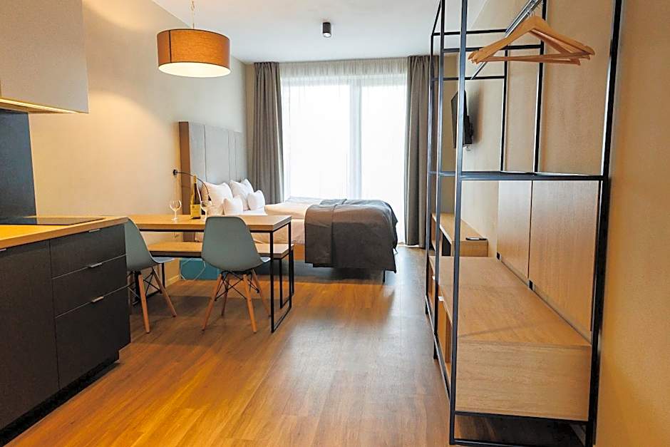 Upper floors are accessible by elevator, providing easy access to balconies with a view and a comfortable retreat after a day of exploring Pilsen.