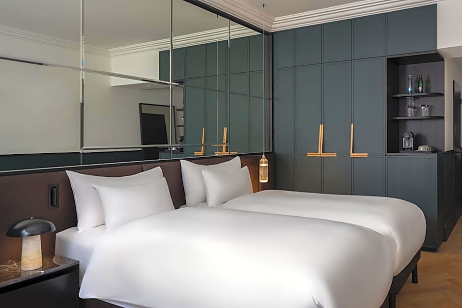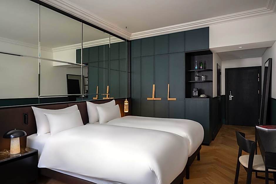 This twin room is newly renovated with soundproofing and features a Wooden floor, air conditioning, walk-in shower,coffee machine and a mini-bar.