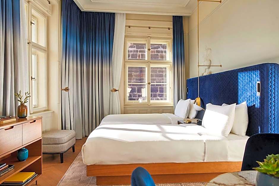 Enjoy our elegant, contemporary design Deluxe Twin bedroom with big, bright windows overlooking the charming streets in the heart of Prague. The detailed and art deco-inspired rooms are brand new, featuring hardwood floors or soft carpet. The private bathroom has a shower and luxury Byredo toiletries. The room amenities include a complimentary mini-bar with select local snacks and beverages and a flat-screen TV with a casting option.