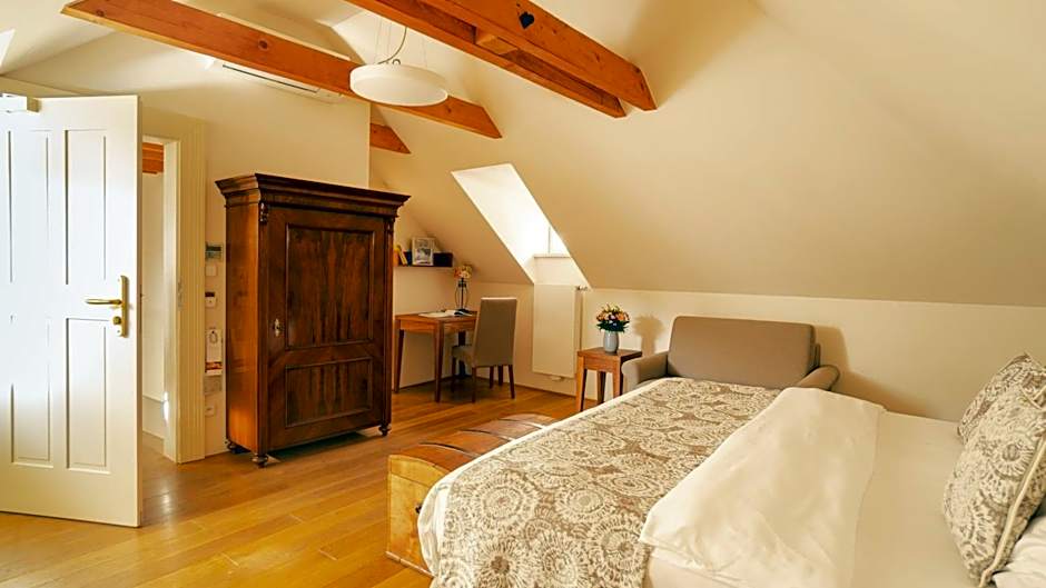 The unique and originally designed suite offers a flat-screen TV with international channels and a bathroom with a bathtub or a shower, bathrobes, slippers, a hairdryer and luxury toiletries. The suite features restored 16th century wooden ceilings and view to the Nerudova street.
