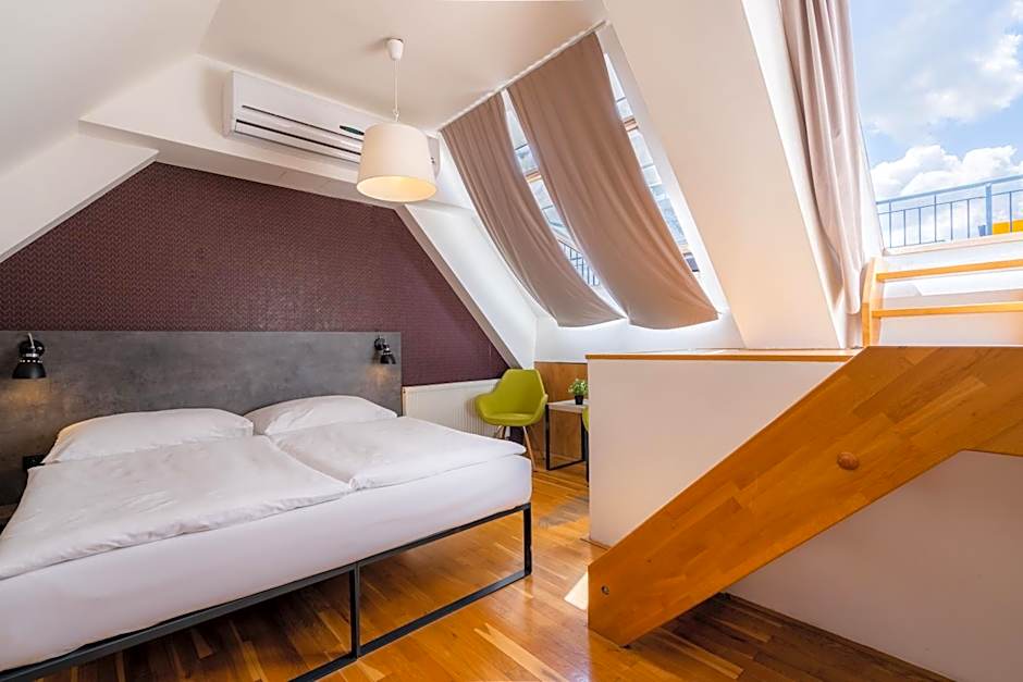 Now let's talk about the wide variety of room types available at EA ApartHotel Melantrich. Whether you're traveling alone or with a group, there's a perfect option for you. The Superior Maisonette is ideal for a couple, with a spacious 420 sqft apartment featuring a comfortable king-size bed.