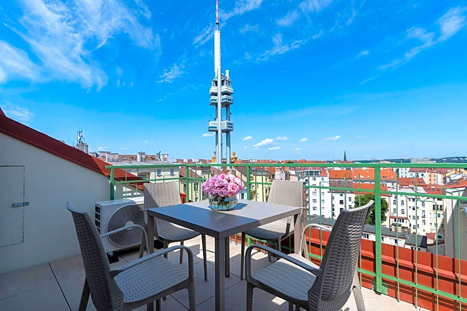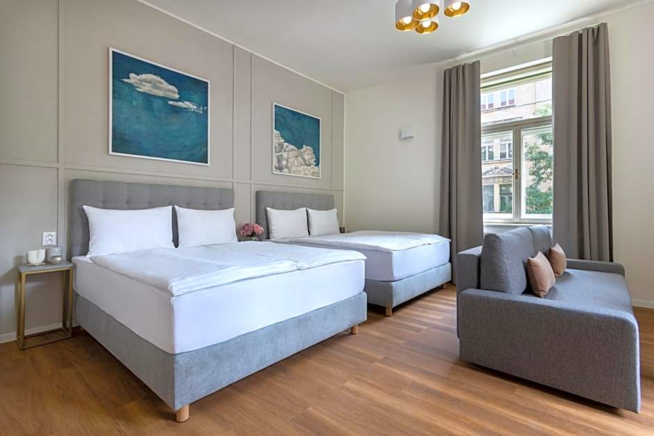 is a four-star aparthotel in Prague, Czech Republic. Located from the city center, it sits at Jagellonská 21. Amenities include free Wifi, a kitchen with kitchenware, soundproof and non-smoking rooms, an elevator, and a tour desk; parking is available for an extra charge.