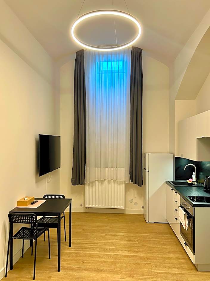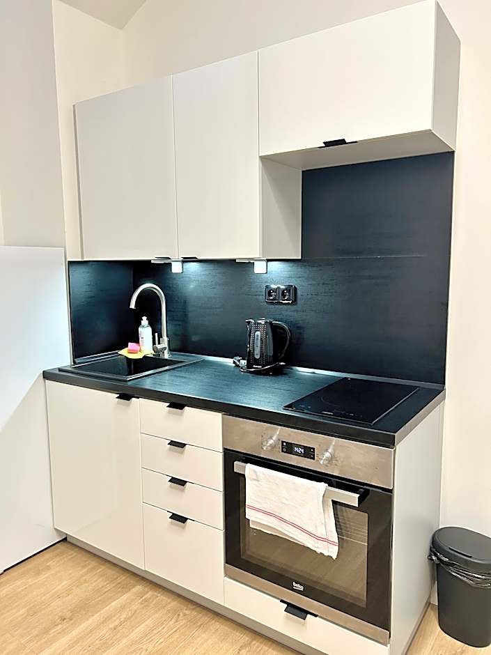 You may not be right in the city center of Prague, but it’s definitely a great value for money choice! The building is fully renovated, modern, and stylish. The check-in system is super easy — you can enter with your phone and no keys, which was really convenient for us since we arrived very late. The room for 3 people was really nice, especially for the price. There are plenty of tram options nearby, with two stations close to the suites, and lots of food spots, supermarkets, and clothing stores within walking distance.