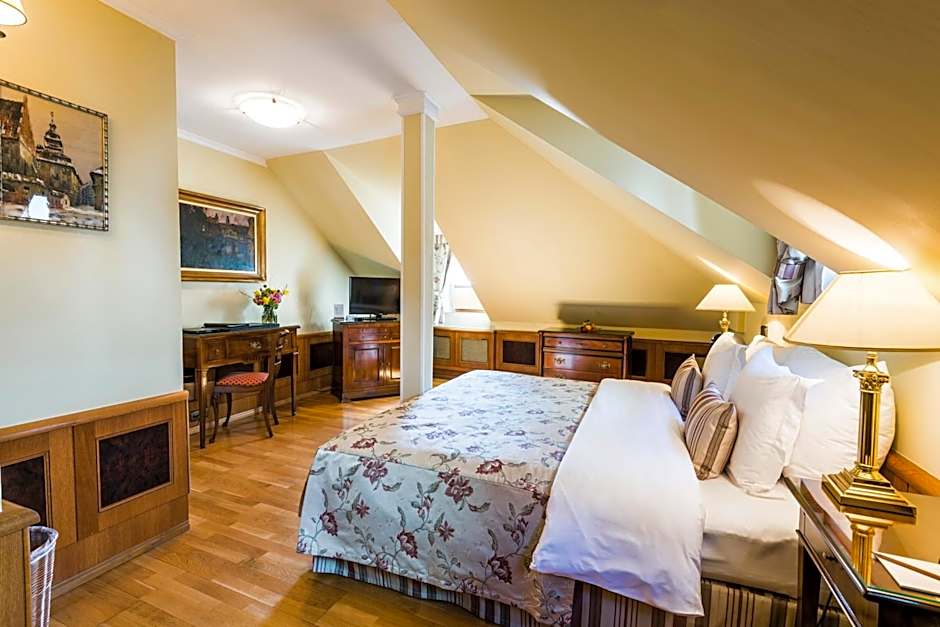 The hotel has an on-site restaurant named Terasa U Zlate studne featuring a romantic ambiance and offering international cuisine.