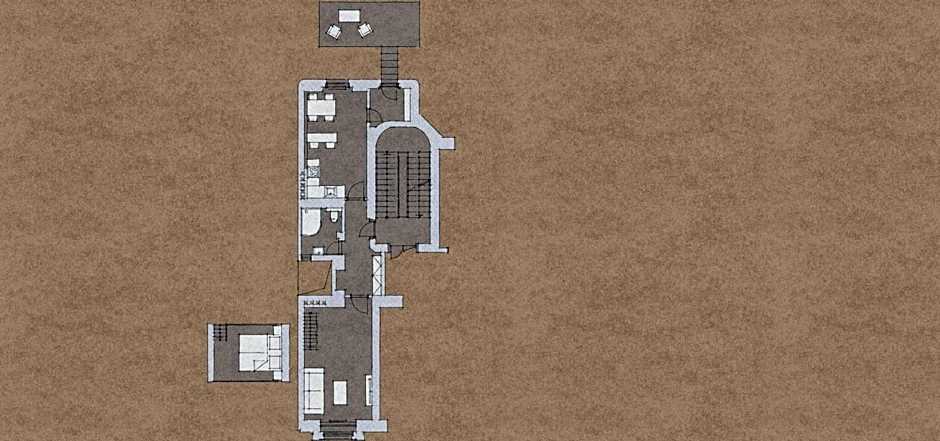 The apartment is located on the 1st floor. There are steep stairs leading to an elevated bedroom area.