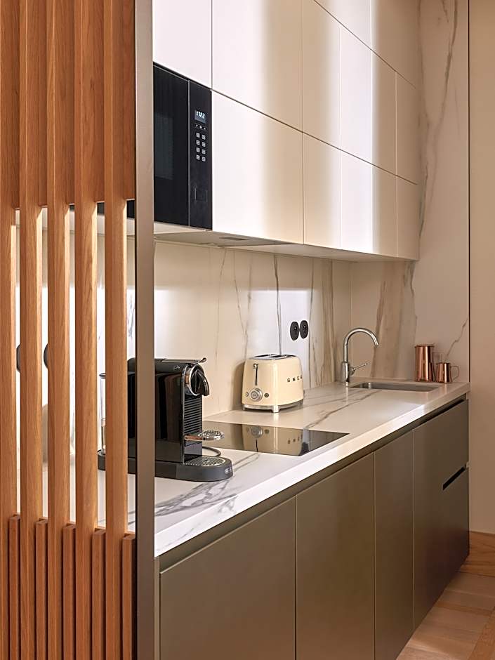 The spacious suite features air conditioning, a tea and coffee maker, as well as a private bathroom boasting a walk-in shower and a bath. In the well-equipped kitchen, guests will find a stovetop, a refrigerator, a dishwasher and kitchenware. The suite has parquet floors, a seating area with a flat-screen TV, a dining area, a wardrobe as well as city views. The unit has 1 bed.