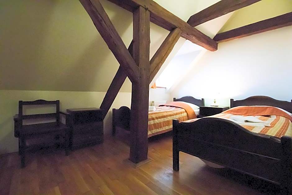 A spacious superior room or a historical room with original style and historical ceilings or original wood beams. Rooms are decorated with upholstery and drapes in matching colors.