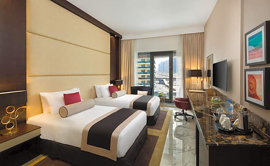 Når du trækker dig tilbage til dit værelse, finder du en afslappende oase udstyret med lydisolerede vægge, aircondition og ekstra lange senge, der vugger dig ind i en fredelig søvn. Mange værelser har altaner, hvor du kan nyde den betagende udsigt over Dubai Marina, samt luksuriøse detaljer som et flot badekar og gratis toiletartikler. For dem, der gerne vil slappe af på stranden, venter gratis strandparasoller og liggestole på dig. er din billet til uforglemmelige minder midt i Dubais betagende charme!