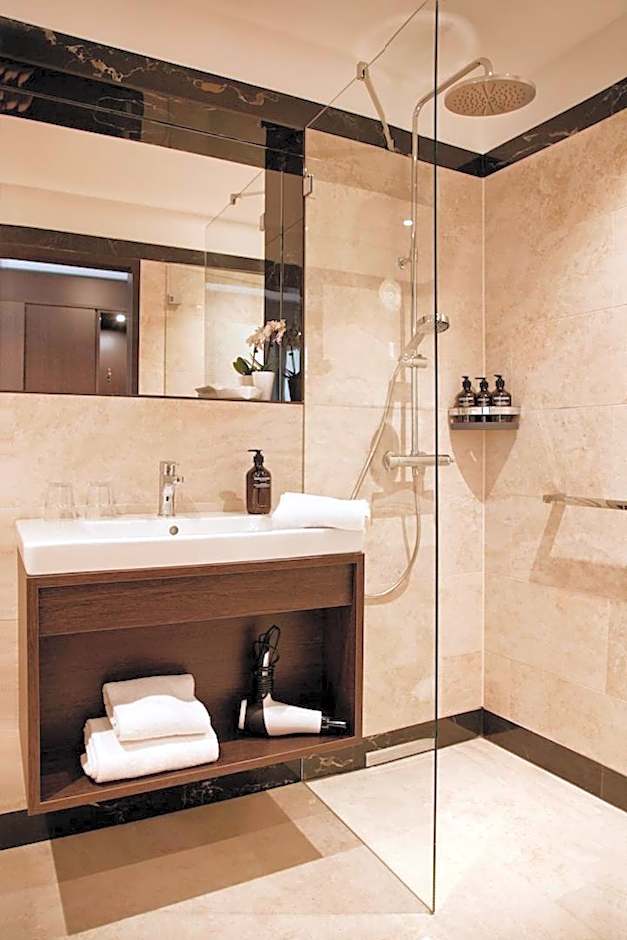 My son & I had booked the Gold Palais Hotel in Prenzlauer Berg as our base for a 4 night stay culminating in an evening in the Olympiastadium to enjoy a Coldplay concert. We arrived late one Saturday afternoon in early July and parked for a short spell just across the road to the hotel. Check in was easy and managed by two friendly receptionists, a young man from Nepal and a nice young lady from Poland. Both spoke English. They explained the set up including what to do if we came back after 23:00 and the reception was no longer manned. This included having a key to open the side door and an emergency number... just in case. And they offered us the one remaining car park space in the underground parking area, costing 18,00 per 24 hours. Super. We left our car down there and didn't see it again for 4 days which was great. We had a room on the 2nd floor. The first thing we had to do was to go down to reception and ask them to separate the beds converting them from one double to two singles. No problem. Apart from the relatively comfortable beds, the room was very clean and modern. We had a modern desk, chair and large wardrobe with a safe. We didn't make much use of the largish flat screen TV but were happy that there was free WiFi and enough sockets for all our electronic equipment. There was a kettle and enough coffee and tea to keep us happy. The separate bathroom was also ultra clean and modern. I liked the large, walk in shower with two shower heads, including the rainforest one which needed some repairs during our stay. The free bathroom amenities were from the "Grown Alchemist". All in all, we enjoyed our stay in this very new hotel. Once they've ironed out some of the things mentioned below this will be an even greater place to stay.