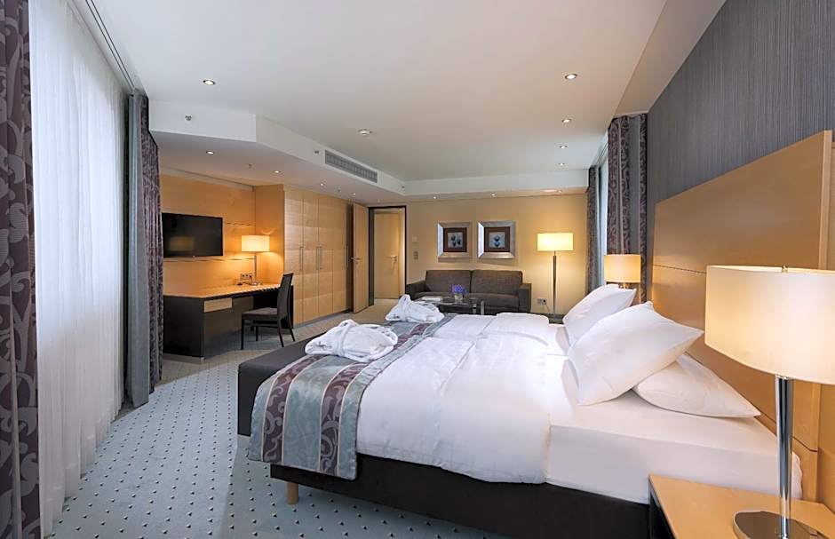 Mit einer Auswahl an Zimmertypen deckt Maritim Hotel Düsseldorf die Bedürfnisse und Vorlieben aller Gäste ab. Ob Sie allein, zu zweit oder mit der Familie reisen, es gibt passende Zimmeroptionen. Vom Classic Twin Room für zwei Erwachsene bis zum Comfort Family Room für drei Erwachsene und zwei Kinder sind die Zimmer durchdacht gestaltet, um Komfort und einen angenehmen Aufenthalt zu gewährleisten. Egal wie groß Ihre Reisegruppe ist, Sie können sicher sein, dass Maritim Hotel Düsseldorf die ideale Unterkunft für Sie bereithält.