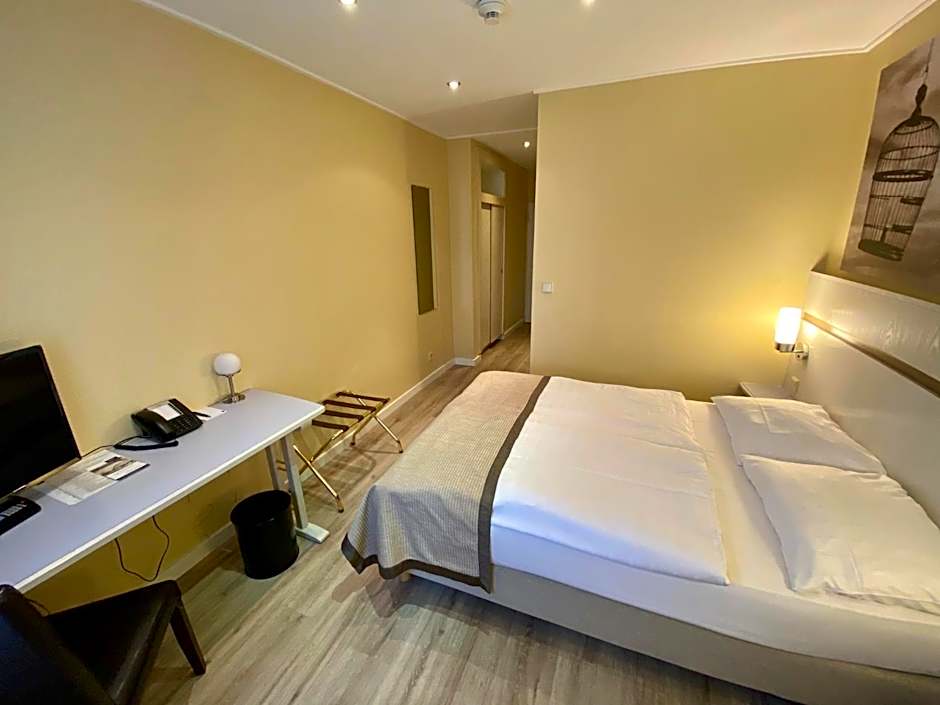 Very nice hotel with very available staff. Our room was facing the internal garden, so it was very quiet. There was no kettle in the room but we could get one with a 20 euro deposit, so we could avoid spending a lot of money for the breakfast and have a small one on our own in the room. Clean room and good bed and fantastic pillows!