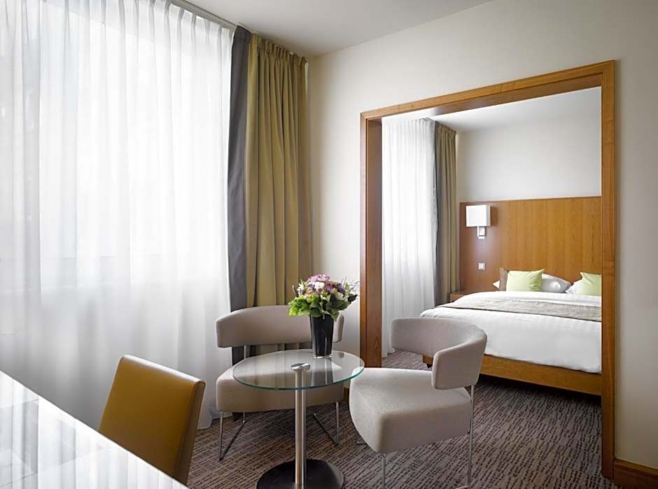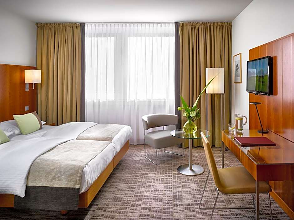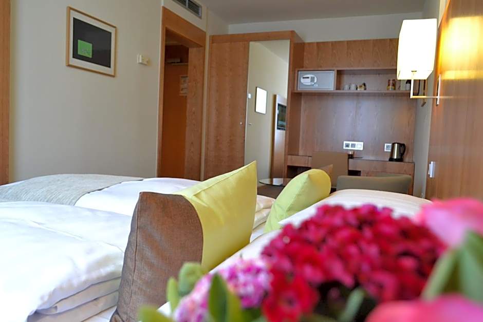 Location: directly at the subway station "Harras"; if you take the elevator from the platform, you end up almost directly in front of the hotel entrance. The Albert-Roßhauer-Straße in front of the hotel is quite busy but at least in our room the windows made the room fairly quiet. I would expect that sleeping with open windows is quite impossible if your room goes out to the front. From Harras, the subway takes you to the Marienplatz in 8 min and to the Klinikum Großhadern in 9 min. Room: we had a rather small twin room but we did not miss anything. Beds were comfortable and had two pillows each. The bathroom offers a shower over a bath. The room appeared to be clean. Breakfast: a quite large selection for 16 EUR including fried and scrambled eggs, bread, rolls (not from a bakery though), yoghurt, muesli, sausage, cheese etc. Gluten-free options are available. Staff: professionally friendly. There was the option to leave the luggage on the last day after vacation of the room. Room is good value for money (we paid less than 80 EUR/night for a twin room).