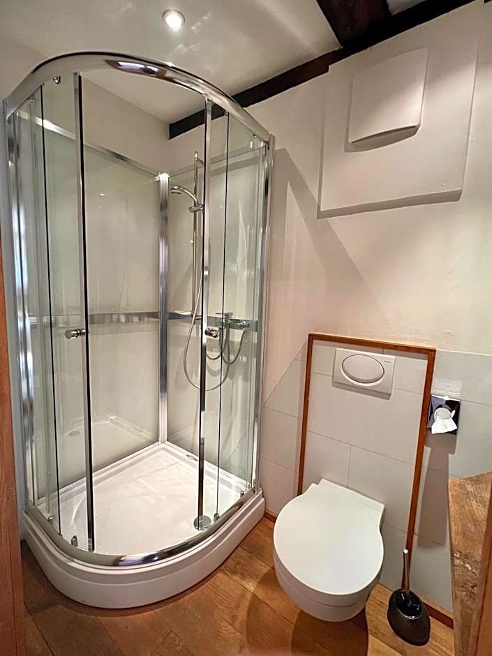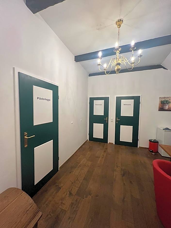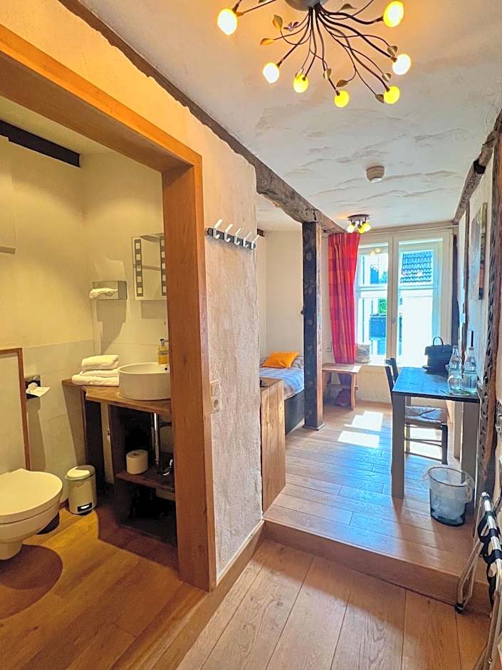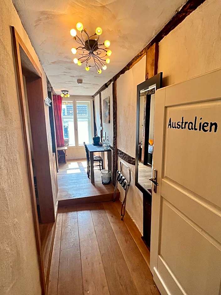 It is a cute hotel in a traditional half-timbered house in Neheim, part of the villages that are collectively known as Arnsberg. All rooms have different themes, ours was African themed. There's plates, cutlery, a microwave and a kettle in the hallway and in the room there's a coffee machine. The beds were very comfortable. The bathroom in our room was separated by a curtain, which might be awkward if you're with someone you don't know so well. There are toilets on the ground floor if you need them. There's free private parking on the premises. The staff is super friendly! All in all, it's a unique place and I really enjoyed it.