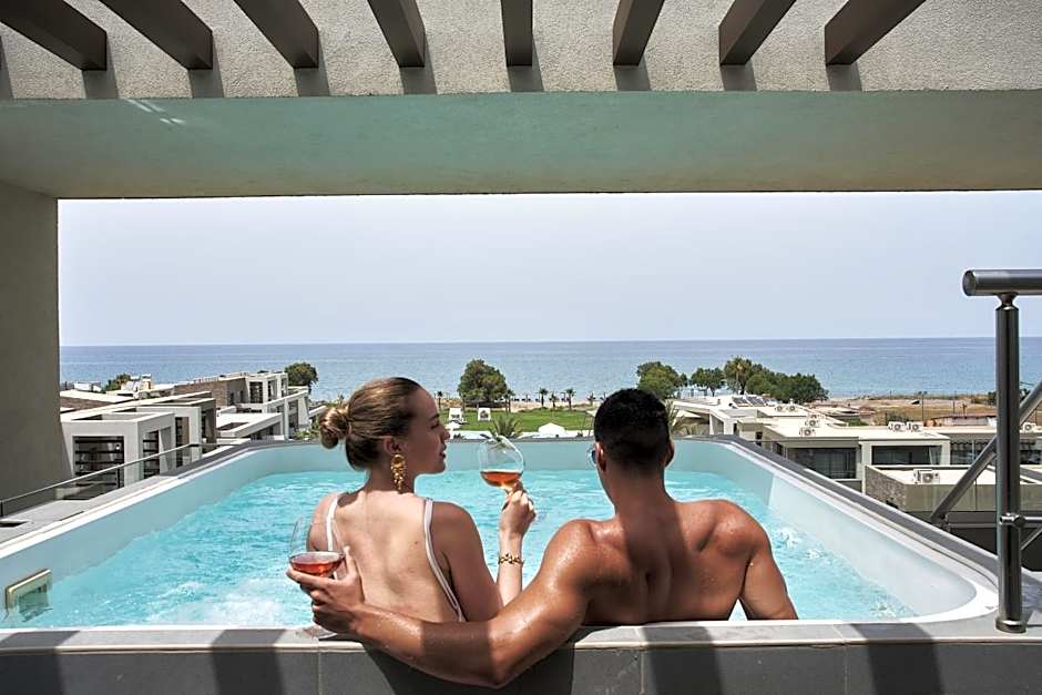 Myrion Beach Resort & Spa - Adults Only ist ein 5-Sterne-Strandresort in Geráni, Griechenland. Im Gebiet Pirgos Psilonerou Beach gelegen, befindet es sich etwa 0,5mi vom Stadtzentrum entfernt. Mit 860 Bewertungen und Preisen ab $349 lädt dieses nur für Erwachsene vorgesehene Refugium Reisende ein, an der Ägäisküste zu entspannen.