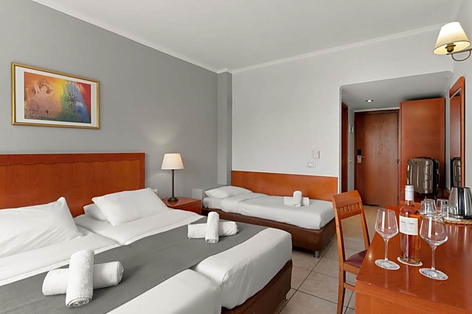 Very friendly and helpful staff. Food was fresh and tasty even if meals were repeated. Gluten free bread and meals provided once asked with no problem. Great service in the restaurant. Room service /cleaning provided daily. We had a great view from family-double room apartment. Hotel is really close to airport so you could watch and hear the starting/landing planes. Not a problem for us (kind of attraction) but someone may not like it.