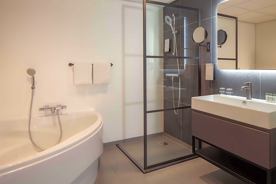 Rooms are roomy with a sitting area (it was a more expensive one than the standard). Rooms are quiet. Beds are excellent. Toilet is separate from the bathroom. Location is perfect about a 100 m from the Central Station - if you have to be in Leiden. Leiden by the way is a very nice town to visit. Breakfast is as good as it gets. The outstanding feature of this hotel are the staff: universally in a good mood, smiling, accomodating, helpful and, honestly… charming.