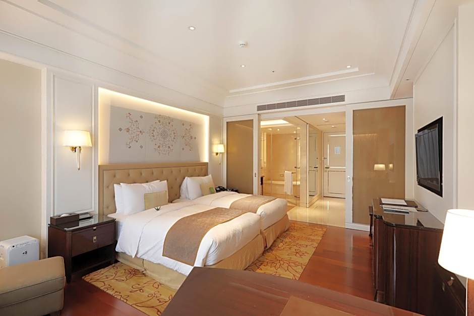 Betreten Sie The Okura Prestige Taipei, ein 5-Sterne-Rückzugsort, der raffinierte Eleganz mit der Energie Taipeis verbindet. Es liegt nur 0,6mi vom Stadtzentrum entfernt im Stadtteil Zhongshan; die Adresse lautet No.9, Sec. 1, Nanjing E. Rd., Taipei City 104, Taiwan (R.O.C.). Frühstück wird angeboten, um den Morgen richtig zu beginnen, und es gibt 1.510 Gästebewertungen. Die Preise beginnen bei $214 pro Nacht.