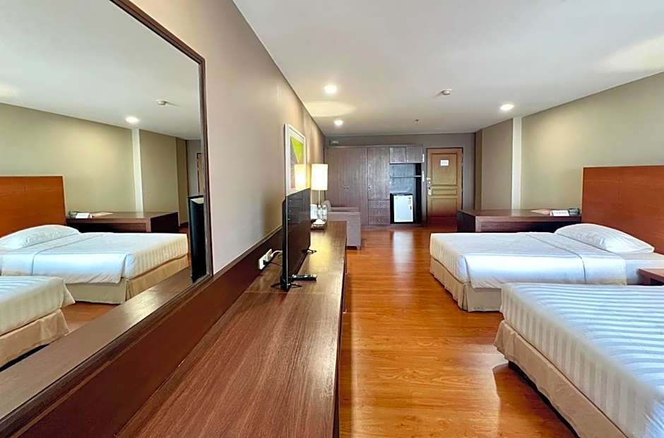 BU Place Hotel bietet eine abwechslungsreiche Auswahl an Zimmeroptionen, die auf unterschiedliche Reisebedürfnisse zugeschnitten sind. Gäste können zwischen Deluxe-Zimmern und Apartments sowie großzügigeren Suiten wie der Family Suite und verschiedenen Grand-Studio-Varianten wählen; außerdem gibt es mehrere Twin-Bett- und King-/Queen-Konfigurationen. Viele Unterkünfte verfügen über Balkone mit Aussicht sowie praktische Annehmlichkeiten wie kostenlose Toilettenartikel und Badewannen, alles in einer Nichtraucherunterkunft. Durch die vielen verfügbaren Konfigurationen eignet sich die Anlage sowohl für Paare, die einen kompakten Kurzurlaub suchen, als auch für Familien und Gruppen, die zusätzlichen Platz benötigen.