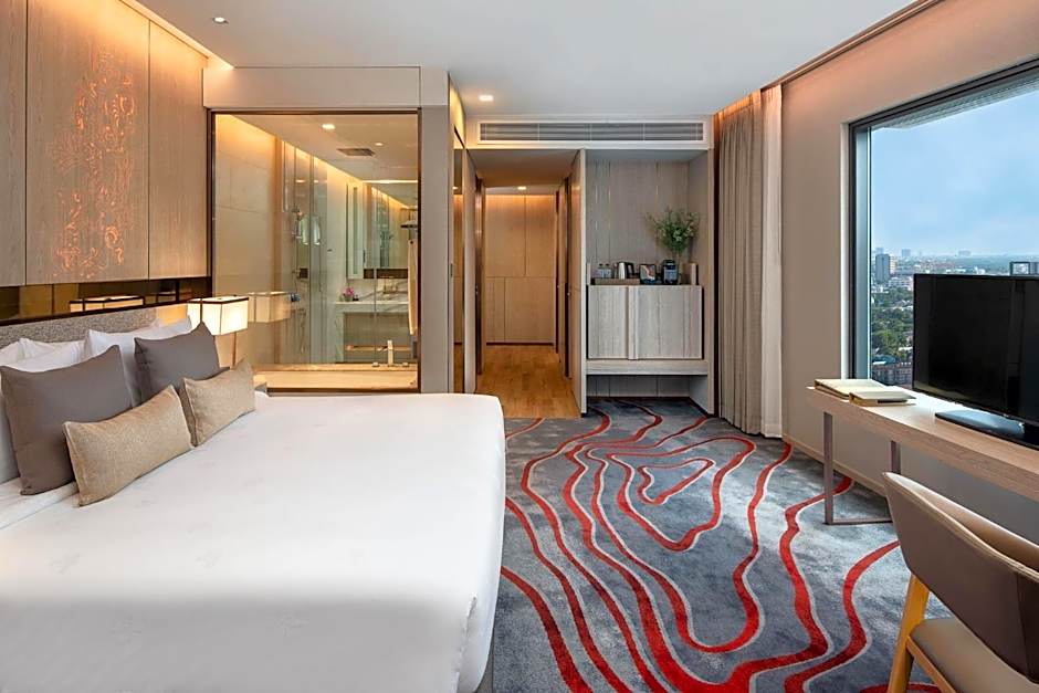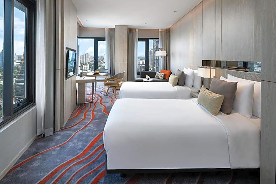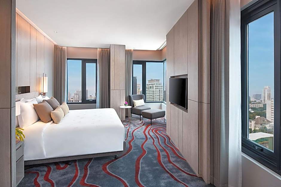 Willkommen im pulsierenden Herzen Bangkoks, wo Luxus auf Komfort trifft im Fünf-Sterne-Hotel Nikko Bangkok. Gelegen in der Sukhumvit 55 (Soi Thonglor) 27 in Watthana, bietet dieses stilvolle Refugium eine perfekte Mischung aus Behaglichkeit und Eleganz, nur 5,6mi vom lebhaften Stadtzentrum entfernt. Ob Sie geschäftlich oder privat unterwegs sind: Beginnen Sie den Tag mit einem köstlichen Frühstück und genießen Sie die Aussicht von den oberen Etagen – all das in einer freundlichen Atmosphäre, die über 880 begeisterte Bewertungen vorweist.
