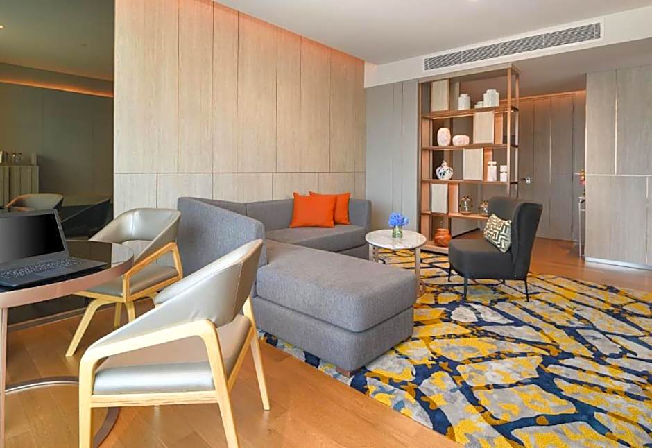 Für alle, die einen Hauch von Eleganz und Panoramablick suchen, ist die Nikko Grand Suite eine herausragende Wahl. Mit beeindruckenden 1.399 ft² verfügt diese luxuriöse Suite über ein gemütliches Queen-Size-Bett und ein Schlafsofa – perfekt für einen romantischen Rückzugsort oder einen Familienaufenthalt, bei dem zusätzlicher Platz gefragt ist. Voll ausgestattet mit hochwertigen Annehmlichkeiten und einem großzügigen Grundriss verspricht sie ein verwöhnendes Refugium nach Ihren Stadtabenteuern. Ganz gleich, ob Sie privat oder geschäftlich unterwegs sind: Das Hotel Nikko Bangkok lädt Sie ein, Komfort, Stil und einen Hauch thailändischer Gastfreundschaft zu erleben.