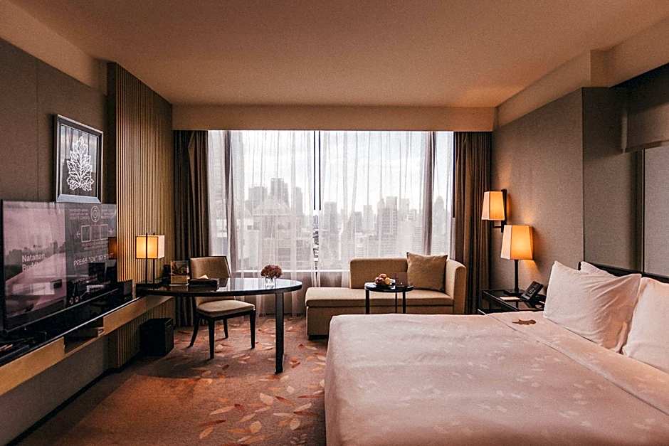 Willkommen im The Okura Prestige Bangkok, einem luxuriösen 5-Sterne-Hotel in der pulsierenden Stadt Bangkok, Thailand. Das Hotel befindet sich in der 57 Wireless Road, Lumpini, Pathumwan, und ist nur 3,2mi vom lebhaften Stadtzentrum entfernt. Tauchen Sie ein in die reiche Kultur und die lebendige Atmosphäre Bangkoks und genießen Sie dabei Komfort und Eleganz im The Okura Prestige Bangkok.