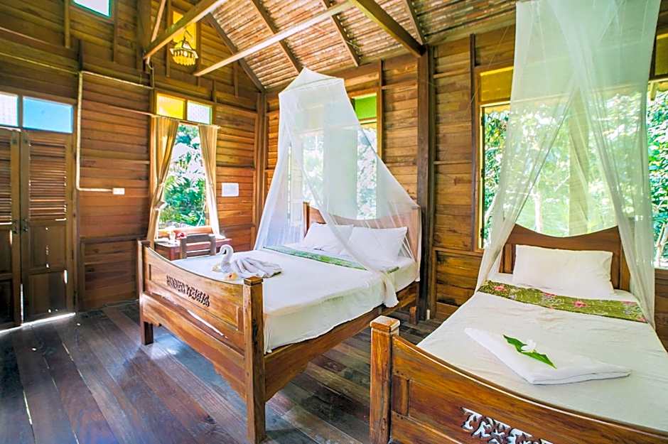 This is the second time we stayed here. Originally we booked the room with the large double bed but upon realising the room was smaller then our previous stay and that it only had a fan and we'd be forced to close the windows due to monkeys coming in, we decided to upgrade to the family room I am glad we did. I would say the double bed rooms are not worth it for that price as they are basic budget bungalows. And honestly the beds aren't that comfortable. And the rooms badly need some tender-loving maintenance.(eg some electrical sockets don't work in the rooms, wooden steps are loose and bedside lighting doesn't turn on).
