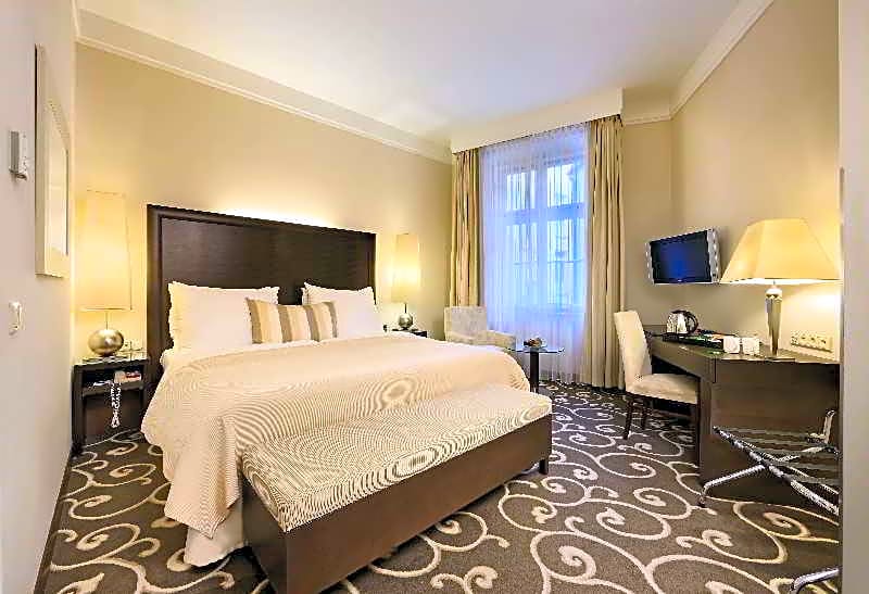 Willkommen im luxuriösen Grand Hotel Bohemia, einem 5-Sterne-Hotel im Herzen von Prag, Tschechische Republik. Nur einen Steinwurf vom Stadtzentrum entfernt bietet dieses elegante Hotel in der Kralodvorska 4 eine günstige Lage für Reisende, die die charmanten Straßen und ikonischen Wahrzeichen von Prag erkunden möchten. Mit insgesamt 3728 Bewertungen können Sie sich auf einen komfortablen und erstklassigen Aufenthalt in diesem exzellenten Hotel verlassen.