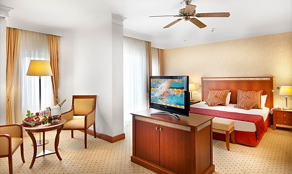 Willkommen im Belconti Resort Hotel, einem luxuriösen 5‑Sterne-Hotel in der lebhaften Stadt Belek, Türkei. Nur eine kurze 0,8mi vom Stadtzentrum entfernt bietet dieses Hotel am Strand 211 Bewertungen, die Sie vor Ihrem Aufenthalt einsehen können. Eingebettet in İskele Mevkii, Belek, genießen Sie die Vorzüge eines privaten Strandabschnitts und atemberaubende Ausblicke nur wenige Schritte von Ihrem Zimmer entfernt.