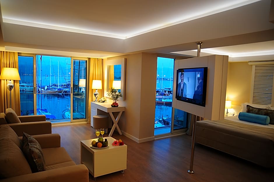 Location was perfect to watch the boats and yachts coming and going from our Marina view room. The rooms were nicely furnished and had everything you need. Breakfast was plentiful and provided a good selection of hot and cold food. The beach club was a fantastic bonus and it was lovely to relax there away from the hustle and bustle of Fethiye. But the best thing about the hotel is the staff. They were all very polite and obliging. Nothing was too much trouble. Particularly those manning the reception desk.