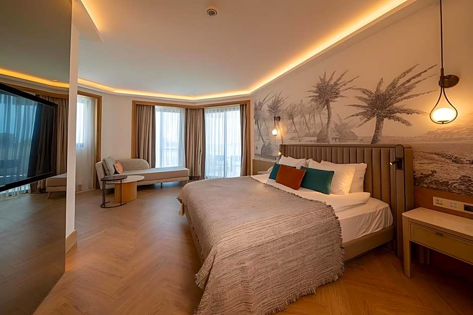 Zu den Einrichtungen gehören ein Wasserpark (kostenlos), ein Miniclub (kostenlos) und ein Restaurant, alles auf einem direkt am Strand gelegenen Grundstück mit einem privaten Strandbereich (kostenlos). Innen- und Außenpools (kostenlos) sowie ein Kinderbecken (kostenlos) erwarten Sie, dazu Privatparkplätze (kostenlos) und WLAN (kostenlos). Zimmerservice, ein Fitnesscenter (kostenlos) und ein Türkisches Bad/Dampfbad (kostenlos) tragen zum Wohlbefinden bei, während Streaming-Dienste (z. B. Netflix), ein Dampfraum, eine Sauna (kostenlos) und ein Spa (gegen Aufpreis) weitere Möglichkeiten bieten. Weitere Annehmlichkeiten umfassen Klimaanlage (kostenlos), eine Bar, Sonnenterrasse, Tourenschalter, Terrasse, schallisolierte Zimmer, Rezeption rund um die Uhr, Nichtraucherzimmer, Live-Musik/Auftritte (kostenlos), rollstuhlgerecht, Strandsonnenschirme (kostenlos), Strandliegen (kostenlos), Aufzug, Spielplatz, kostenlose Toilettenartikel, Kindermahlzeiten (kostenlos), Balkon, Garten, Blick, extralange Betten (> 6,5 ft) und obere Etagen per Aufzug erreichbar.