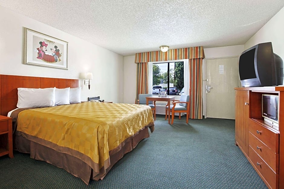 Travelodge Inn & Suites by Wyndham Anaheim on Disneyland Dr ist ein einfaches 2-Sterne-Hotel in Anaheim, Kalifornien, etwa 1,3mi vom Stadtzentrum entfernt. Die Adresse ist 1057 West Ball Road, wodurch diese Unterkunft in Reichweite der örtlichen Sehenswürdigkeiten und Viertel liegt. Frühstück wird angeboten, und die Preise beginnen bei $119 pro Nacht – ein erschwinglicher Einstieg für Reisende, die Wert auf gutes Preis-Leistungs-Verhältnis legen.