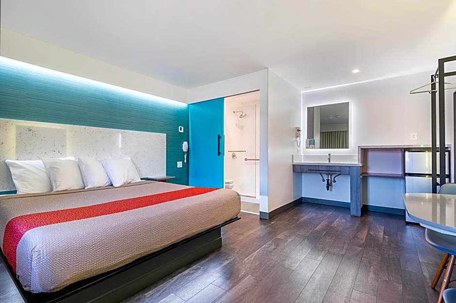 Only has a fridge so you can't heat up instant oatmeal for breakfast. Not a lot of nice looking restaurants in the area. Location isn't recommended by locals as they say there are many homeless people. I (a slim not imposing looking 6ft caucasian looking male) walked back from Banc of California Stadium (~1 mile) at midnight down broadway and only came across a handful of tents and homeless individuals. However, there were almost the same amount of street food vendors with bright lights scattered across my route. It wasn't nearly as bad as I thought it would be based on what my rideshare drivers were telling me, but maybe this was a recent change. If you're a tourist, I'd say it's not worth hanging around the area. There's better food and more things to do a couple miles North.
