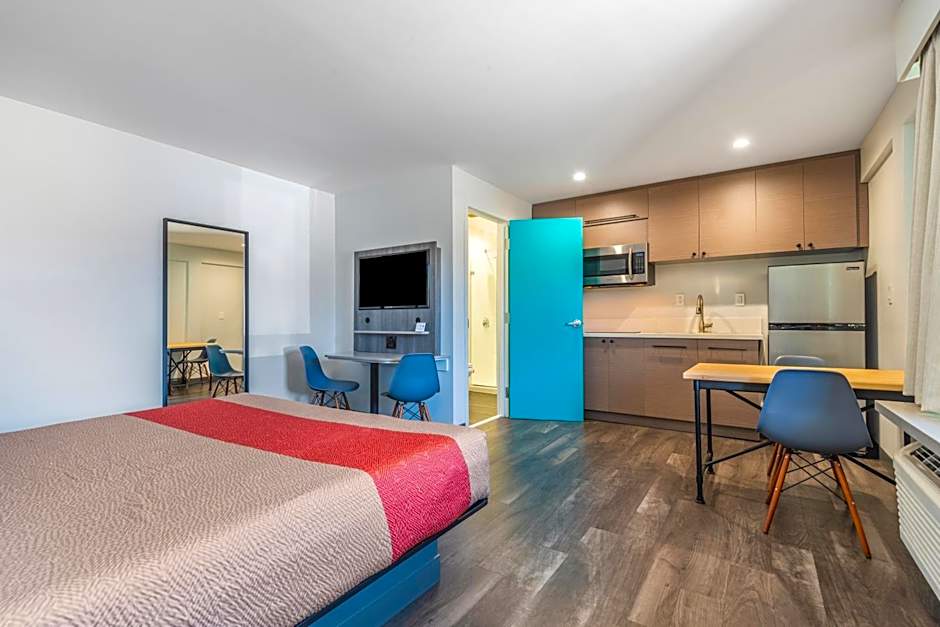 Dieses preisgünstige Angebot in Los Angeles, Kalifornien, USA, bietet den grundlegenden Komfort für Reisen, darunter Klimaanlage, eine Kochnische, kostenloses WLAN und kostenlose Toilettenartikel.