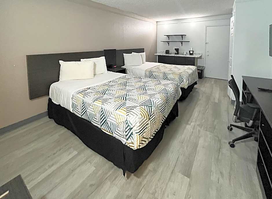 The motel is next to a CVS, has two restaurants across the street, and even a bowling alley. The traffic in the area was pretty low. A few minutes away there’s a lot more restaurants and stores. About 10 minutes away is downtown that has more stuff to do.Best thing is they didn’t charge a room deposit which most places do. Rooms are clean.