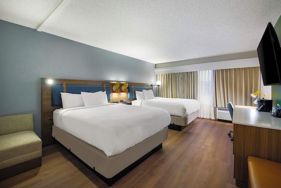 Our room was clean, comfortable and very accessible. We booked a mobility accessible room. The bed was low enough to get in easily. The bathroom was spacious and the roll in shower was great. Front desk staff was friendly and helpful. The location is close and convenient for the stadiums and arena. A short commute, but traffic can make it a little longer.