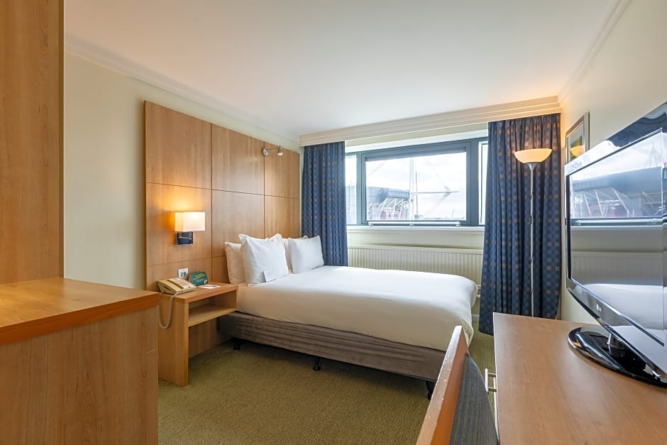 Willkommen im Holiday Inn Cardiff City Centre by IHG, wo Ihr Abenteuer im Herzen von Cardiff beginnt! Eingebettet in der Castle Street, nur einen angenehmen 0,2mi vom lebhaften Stadtzentrum entfernt, ist dieses 4-Sterne-Juwel die perfekte Basis für Ihr walisisches Abenteuer. Ob Sie hier sind, um die historischen Sehenswürdigkeiten oder die lebendige Kulturszene zu erkunden, Sie werden es lieben, nach einem Tag voller Erkundungen in eine ruhige Oase zurückzukehren – und Ihren Tag mit einem köstlichen Frühstück zu beginnen, um Ihre Abenteuer zu befeuern!\n\nMit 2.723 begeisterten Bewertungen, die es zu einem Favoriten unter Reisenden erklären, bietet dieses Hotel Bequemlichkeit und Komfort, verpackt in moderner Eleganz. Genießen Sie ein Festmahl im Restaurant des Hotels, bevor Sie sich an der Bar entspannen, oder nehmen Sie sich einen Moment Zeit, um im Garten zu relaxen und die Aussicht auf den Fluss und die geliebten Stadtlandschaften zu genießen. Die durchdachten Annehmlichkeiten – von Klimaanlage und schalldichten Zimmern bis hin zu Kindergerichten und kostenlosem WLAN – sorgen dafür, dass jeder Gast genau das findet, was er braucht, um sich wie zu Hause zu fühlen.\n\nStellen Sie sich vor, Sie wachen in einem gemütlichen Zimmer auf, das all Ihren Wünschen gerecht wird, vielleicht mit Blick auf den majestätischen Fluss oder die geschäftigen Straßen der Stadt! Mit Preisen ab nur $67 war es noch nie so einfach, sich ein wenig Luxus zu gönnen. Ob Sie hier geschäftlich mit Tagungseinrichtungen sind oder einfach nur einen gemütlichen Ort zum Ausruhen nach einem Tag voller Spaß benötigen, das Holiday Inn Cardiff City vereint Komfort, Qualität und eine erstklassige Lage, die Ihre Reise wirklich unvergesslich machen wird!